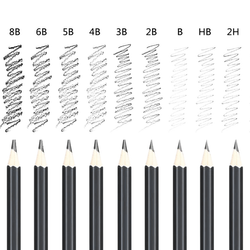 - 18 карандашей для рисования (2H / HB / B / B2 / B3 / B4 / B5 / B6 / B8)