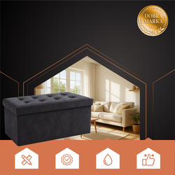 Пуф для хранения RUHHY — практичное и стильное решение для вашего интерьера. Обитый водостойким бархатом с усилением из МДФ, он имеет мягкое сиденье и вместительный отсек для хранения объёмом 110 литров — идеальное решение для хранения безделушек, игрушек, пледов и одеял. Складная конструкция, высокое качество изготовления и максимальная грузоподъёмность сочетают в себе функциональность и элегантный вид — идеальное дополнение к гостиной, спальне или прихожей.