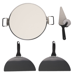 В комплект входит: печь для пиццы, керамический камень для пиццы с ручками, 2 лопатки, нож 2-в-1, руководство пользователя, защитный чехол из пенополистирола, красочная упаковка, коричневая транспортная коробка.