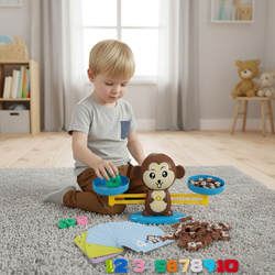 Waga szalkowa Małpka to świetne narzędzie edukacyjne do nauki matematyki i podstaw fizyki. Idealna do zabawy w domu, w przedszkolu czy szkole. Pomaga dzieciom od 3 roku życia poznawać świat liczb w przystępny sposób.