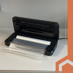 - Встроенное хранилище рулонов + резак для фольги - создавайте пакеты любой длины, режьте ровно и без ножниц - вы экономите время и сохраняете порядок на столешнице.