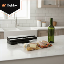 Вакуумный упаковщик Ruhhy 80 кПа — быстрая упаковка и более длительное сохранение свежести — выдвижной нож и место для хранения рулонов — ширина пакета 30 см — 110 Вт — шланг для контейнера и рулон включены