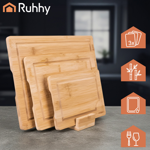Deska bambusowa do krojenia- 3szt. + stojak Ruhhy